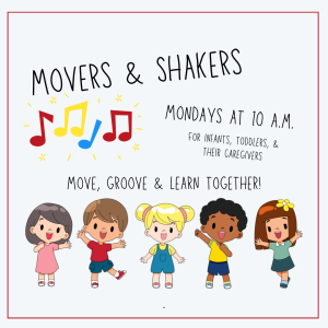 Move, groove, and learn together at Movers & Shakers. The program combines music and movement with early literacy and social skills practice to provide a well-rounded learning experience for infants, toddlers, and caregivers. It’s a great way to make new friends while learning through play.