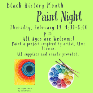 Join us for a special pain night inspired by artist Alma Thomas. All supplies and snacks provided by the library.