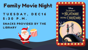Snacks are provided by the library, and all ages are welcome. Before and after the film, you’ll have a chance to take your photo with Jack and his trusty dog, Zero. Jack might even sing you a song.