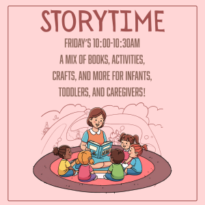 For infants, toddlers, and their caregivers. Meet Mr. Jack weekly in the Children’s Area for books, activities, crafts, and more! This program combines reading, early literacy, and group participation to provide an experience for young readers. This program aims to give caregivers insight on the importance of reading to children and give confidence to do such. This program is a perfect way to make new friends and sharpen young minds!